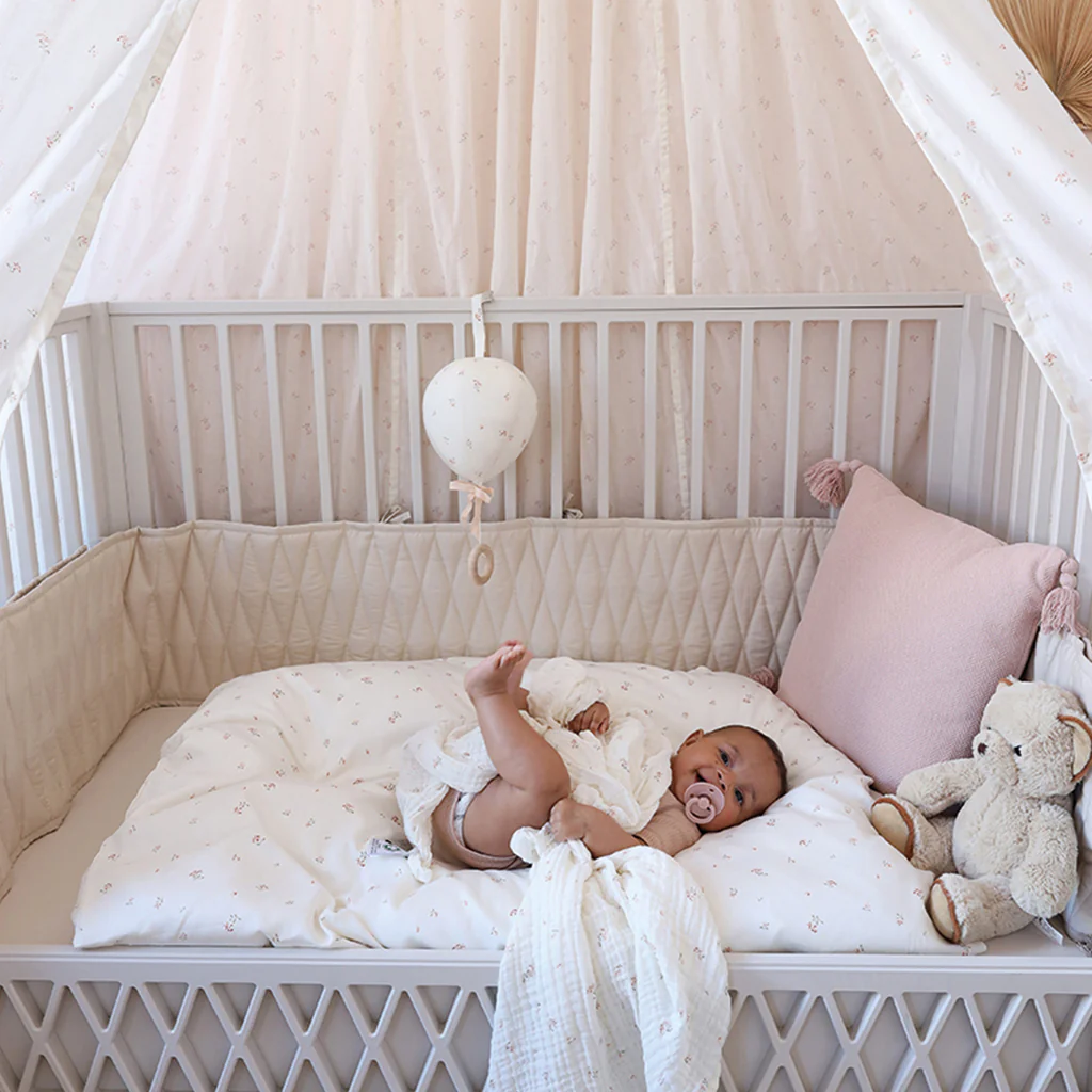 Soft, organic cot bumper with soft filling inside to provide comfort, safety and calmness for your baby while sleeping.